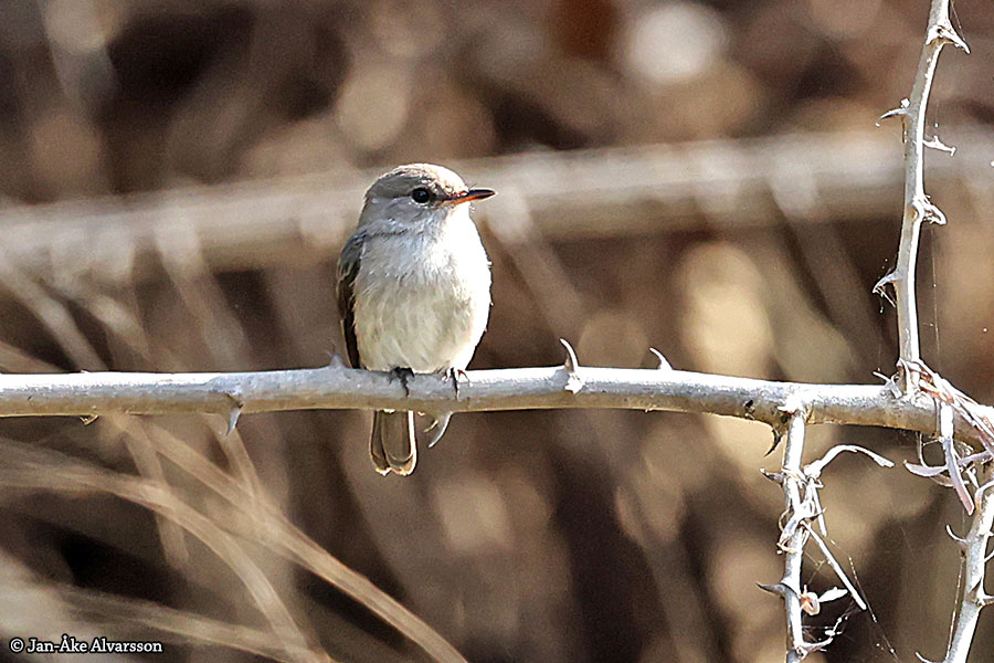 The Swamp flycatcher is scattered in patches in a belt along the equator, across Africa. It is locally very common and relatively visible. It usually has a favorite spot where it sits and watches and to which it returns when it has caught an insect. This individual was sitting on the bank of the Gambia River.