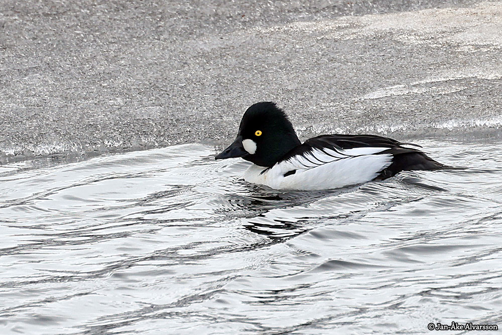 Perhaps the most common duck bird in the rivers of Norrland - at least it seems so in the areas around the municipality of Hemavan! The picture clearly shows why it is called 'Goldeneye' in English.